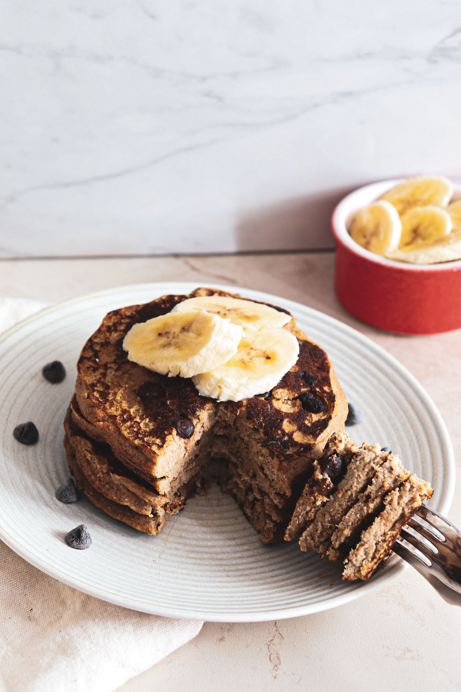 Cette première recette de 2021 est tout cela et je dirais que je suis un peu obsédée par elle pour le moment car elle me donne une sensation de satiété jusqu'à l'heure du déjeuner et regorge d'ingrédients sains et nutritifs. Être enceinte me fait être encore plus consciente de ce que je mets dans mon corps. Ces crêpes sont faites dans le mélangeur et ne créent pas trop de vaisselle à nettoyer. Si vous me demandez, je dirais que c’est un bonus incroyable. Elles sont moelleuses et pourtant sans gluten puisque j'ai utilisé de l'avoine au lieu de la farine, donc si vous êtes sans gluten et végétalien, vous les apprécierez vraiment.